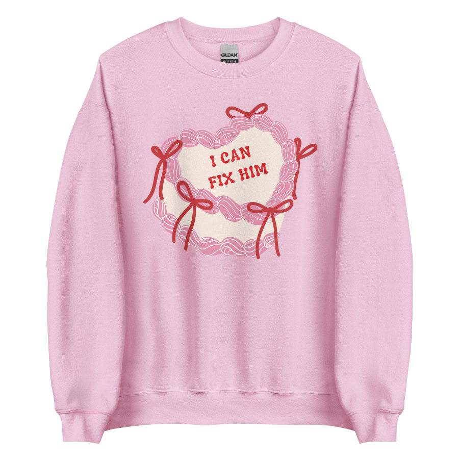 I Can Fix Him Cake Sweatshirt – Coquette Valentine – Hot Villain Romantasy Inspired Unisex Crewneck