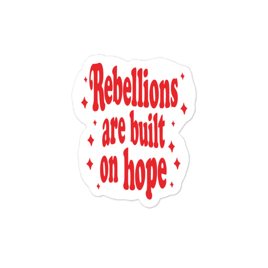 This “Rebellions Are Built on Hope” sticker is inspired by the belief that change starts quietly — through connection, care, and choosing hope even when it feels fragile.